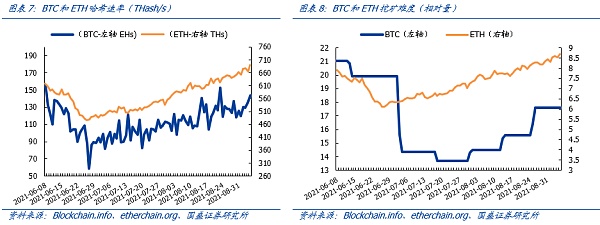 上周BTC全網平均挖礦難度為17.62T;下次難度調整日在2021年9月8日,預計難度值為17.76T(+0.82%);上周ETH全網平均挖礦難度8.5T,環比上漲3.8%。