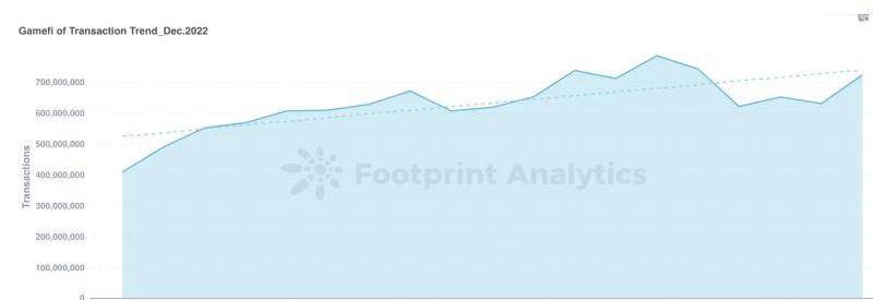 交易額表示市場活動水平,自2021年中期至2022年底,一直保持在較高水平。這給了市場一個強大的信心,即Gamefi是一個熱門領域,2021年有很多人關注。