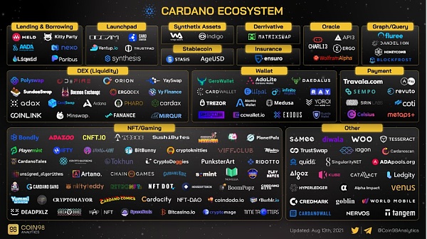 我們可以通過 Coin98 的統計,鳥瞰整個 Cardano 的生態版圖。