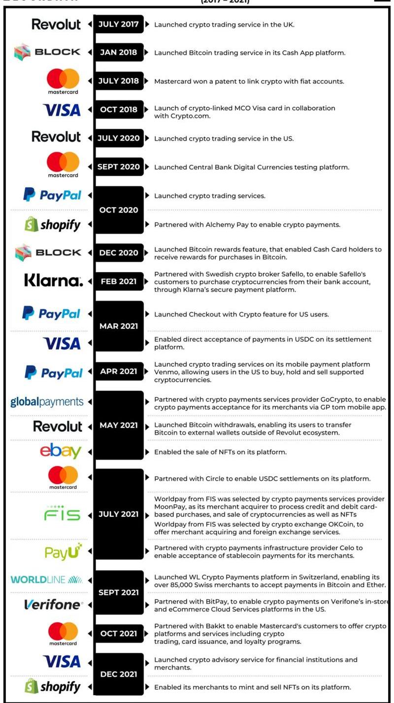 2.傳統支付公司通過合作,擴展了他們的加密服務:
