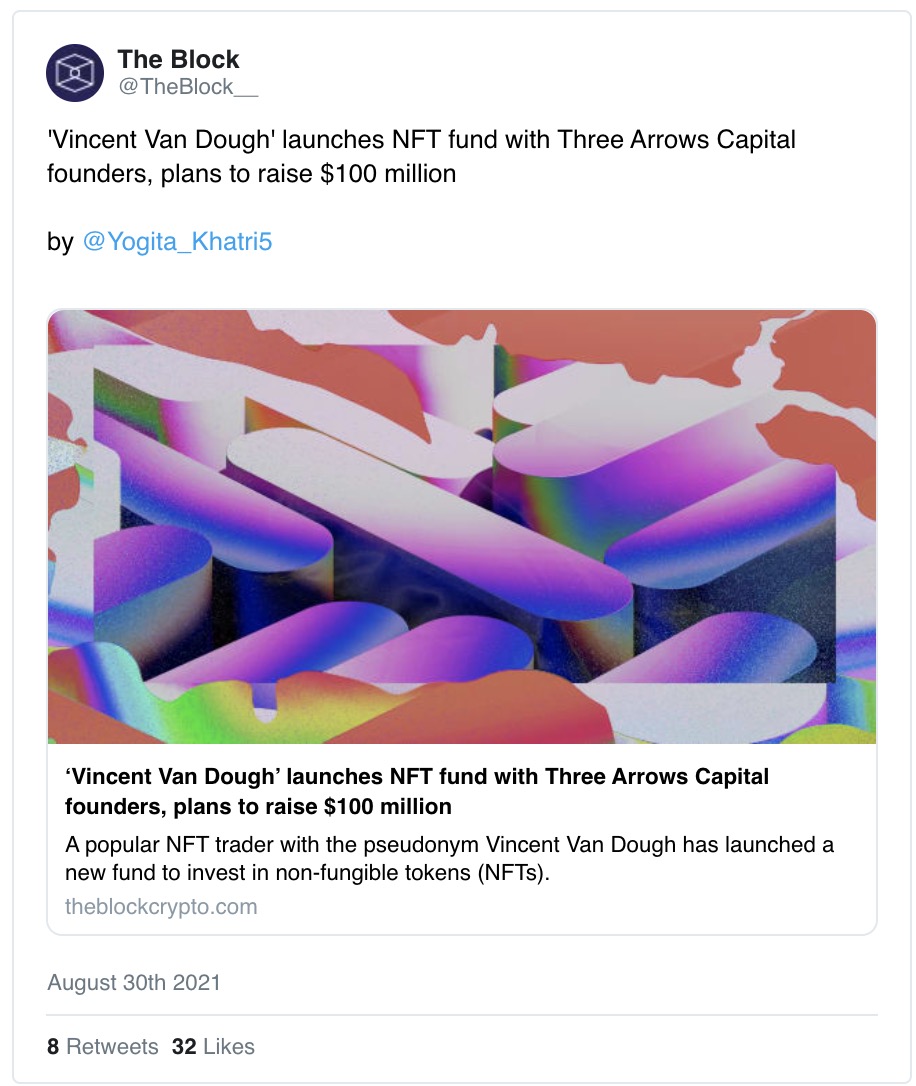 而在今天上午,三箭資本(Three Arrows Capital)還推出了一只專注于NFT的基金,而其只是眾多將備受矚目的NFT納入資產負債表的基金之一。