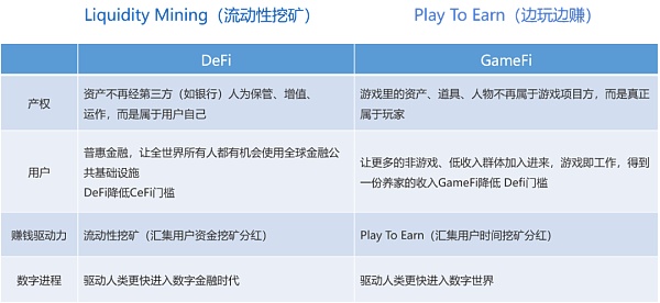 下面這張圖總結了DeFi的流動性挖礦和GameFi的P2E的一些特點。