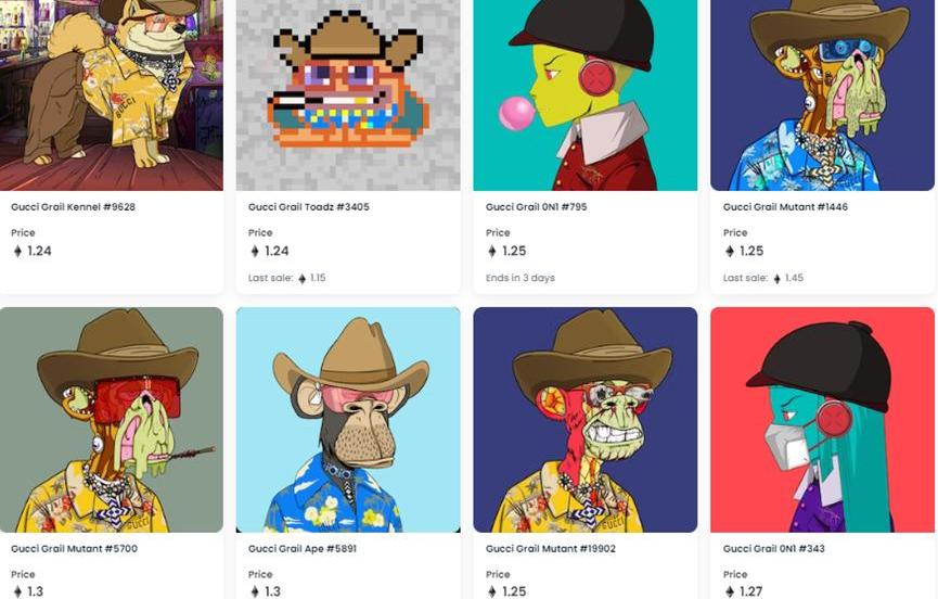 2021年,Gucci推出了名為「SUPERGUCCI」和「10KTFGucciGrail」NFT系列,以及元宇宙商店「GucciVault」系列NFT。