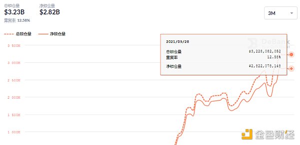 DeFi項目鎖定資產前十排名及鎖倉量,數據來源:Debank