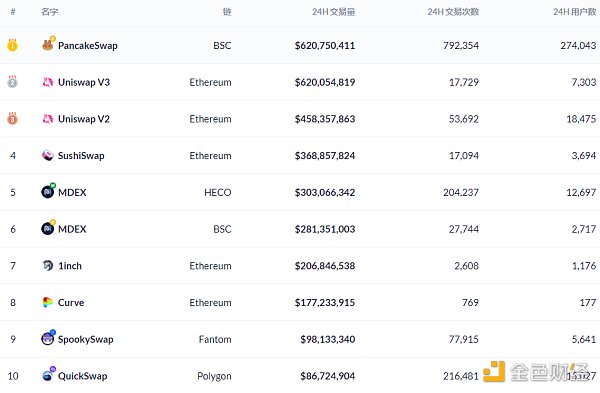 過去24小時去中心化交易所的交易量數據來源:Debank