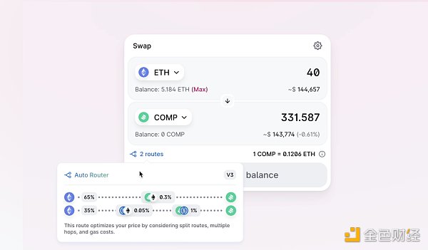 如果在考慮gas成本后Uniswapv2上有更好的交易可用,自動路由器將自動切換到v2。