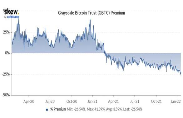 在BTC2月中第一次沖擊6萬失敗后,灰度的GBTC市場開始出現顯著變化,GBTC的溢價開始由正轉負,標志著大量機構盤開始停止進入加密市場,甚至開始撤離。