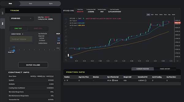 交易用戶在存入USDC、ETH(WETH)或WBTC作為保證金后即可開始交易,目前支持對BTC和ETH進行最高30倍的杠桿交易,交易按照預言機價格實時成交,收益可以實時提取。