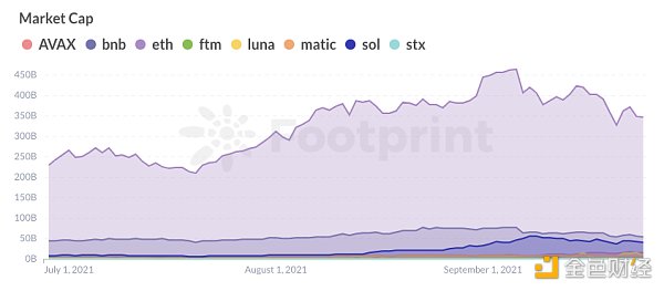 根據 Footprint Analytics 上收錄的各公鏈協議數量,以太坊已有 286 個協議,BSC 有110個,緊隨其后的 Polygon、Avalanche 、Fantom也已開啟激勵計劃,分別有66、34、32個。相比以太坊,它們擁有更吸引人的手續費及更快速的交易速度,這表明,第二梯隊的公鏈在未來的發展也不容小覷。