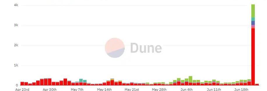 Arbitrum奧德賽活動已于北京時間6月22日凌晨1時正式開始。社區普遍期待此次活動將成為獲得Arbitrum空投的「敲門磚」。好在GAS不高,ETH也相對便宜了很多,交互成本可控。鏈上數據顯示,隨著活動開始,跨鏈交易量出現了迅速增長。