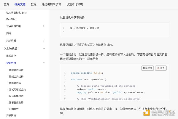 在以太坊網站里調整語言,然后可以在開發者菜單里看到下拉菜單中有一個相關文檔的頁面。