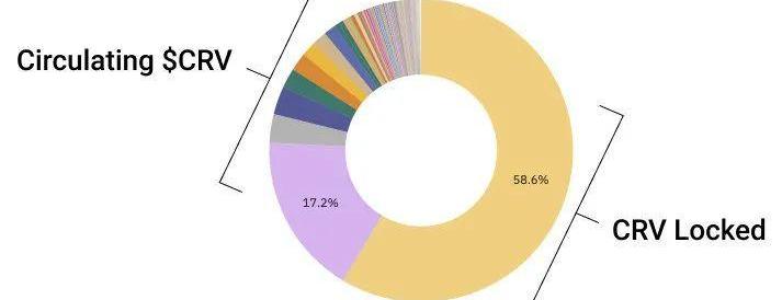 Curve可能在DeFi中創建了最強大的激勵結構,用治理代幣激勵流動性。他們在儀表中使用CRV,導致大量供應被分配到生產用途,有效地長時間鎖定了他們的絕大多數代幣供應。