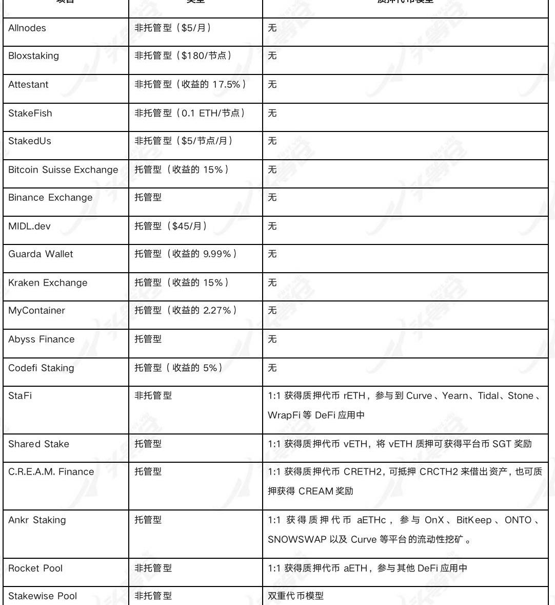 自從?以太坊2.0?質押上線,很多第三方平臺都為用戶提供了該服務,包括中心化和去中心化平臺。目前比較主流的代表有:中心化平臺有Binance、Kraken以及BitcoinSuisse。去中心化Staking平臺有StakewisePool、RocketPool以及Lido。