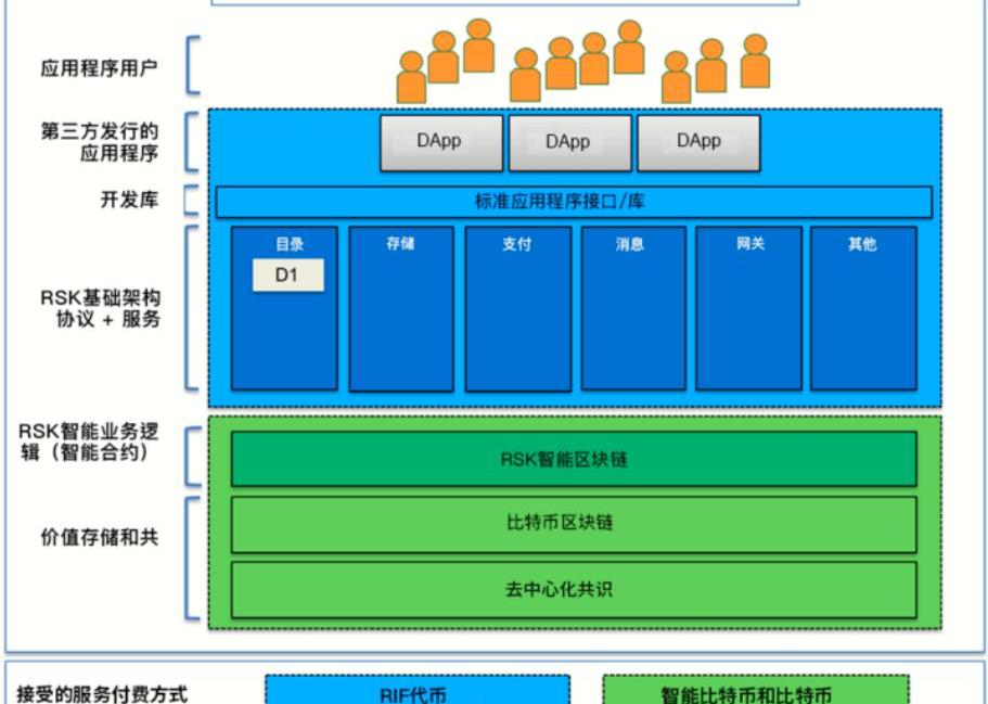 在RIF中,網絡的安全性由比特幣鏈來確保,RSK智能合約是以測鏈,1:1錨定BTC的方式編寫,在智能合約只是搭建各種基礎架構,如存儲,支付,信息等,開發者可以此架構之上開發應用程序,由此搭建整體網絡機制。
