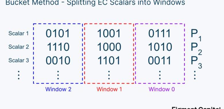因此,每當你聽到「多標量乘法」時,我們所做的就是把許多EC點加在一起,得到一個新的EC點。水桶法