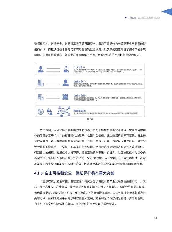 5、安全和隱私保護得到進一步解決。“主權在我、安全可控、互聯互通”將成為區塊鏈技術和產業發展的重要原則,自主可控的安全與隱私保護算法、固化硬件芯片等將取得重大突破,安全和隱私保護問題將進一步得到解決。