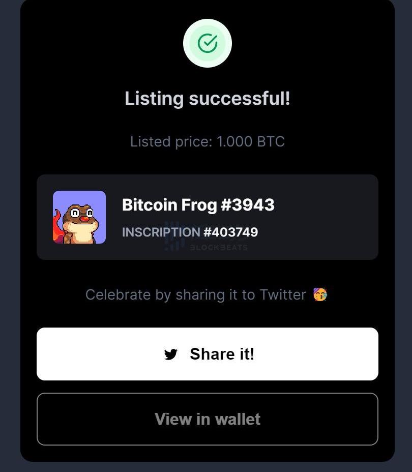 可以看見,購買比特幣NFT的過程和在OpenSea上購買ETHNFT在體驗上已經相差無幾。但是依然有一些暫時還沒有解決的問題:1.比特幣沒有智能合約,每個NFT系列也不是通過合約來識別,必須由每個NFT市場手動收錄。目前成交量和關注度居前的比特幣NFT基本上都可以在主流市場上交易,但是由于沒有聚合器,還是要挑選流動性比較大的市場。比如本文用于演示的項目BitcoinFrog,盡管在Gamma和MagicEden上都有被收錄,但是在Gamma上只有寥寥個位數的掛單,MagicEden上則有很多。2.如果之前一直在使用「內置錢包」市場,需要轉到Gamma/MagicEden等「外置錢包」市場交易時,還需要把「內置錢包」導入到「外置錢包」,或是將「內置錢包」的NFT轉移到「外置錢包」。也就是說,比特幣NFT交易市場間目前還存在一些「壁壘」,開始將使用習慣變成使用Xverse/Hiro/UniSat等「外置錢包」會比較方便。3.每個NFT系列的數據分析相關內容還有待完善。