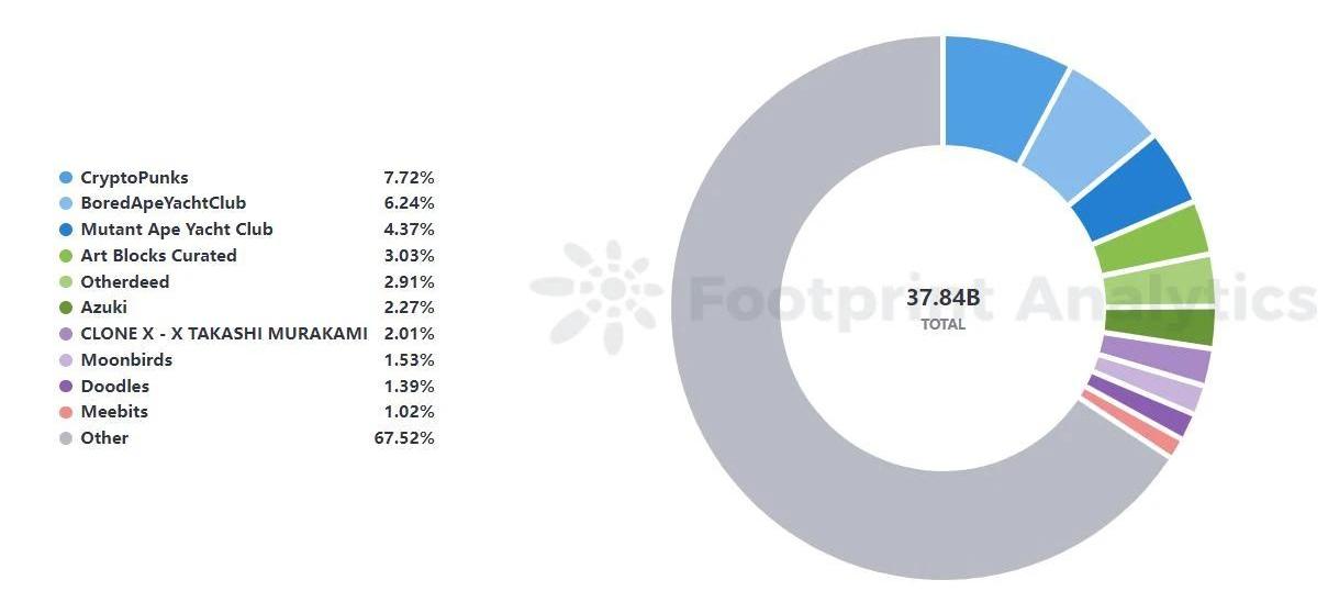 2022:TopCollectionsbyMarketCap10、Yugaverse-YugaLabs的產品組合中的主要系列的交易量為31億美元這個數字包括BoredApeYachtClub,MutantApeYachtClub,BoredApeKennelClub,Otherside,andCryptoPunks。但不包括Meebits,它的交易量比所有這些產品的總和還要多。