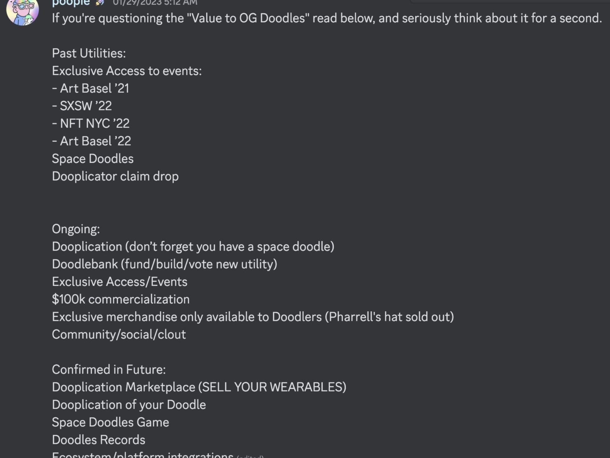 XRP/HKD+1.53%隨著Doodles2將在Flow鏈上發布以及越來越多的細節被公開,市場上針對這個曾經風光無限的NFT藍籌項目的質疑聲四起,Doodles系列OpenSea地板價也在過去一周時間里自8ETH跌至6.6ETH,衍生系列Dooplicator與GenesisBox價格也出現了明顯回落。針對近期集中涌現的FUD情緒,Doodles聯合創始人@poopie在Twitter上發文回應了社區里頻繁出現的質疑言論:你們只愿意關起門來!-我們確實為Doodles的Discord設置了門禁,因為我們希望為我們的支持者和愿意貢獻力量的朋友們提供一個良好的溝通環境,而不希望把DC頻道變成一個怨聲載道的「糞坑」。你們在購買Doodles并意圖操縱市場!-沒錯,我們已經花了數百萬元去回購我們喜歡或需要的Doodles。但我們沒有出售任何一個。OG系列一直沒有被稀釋!-我們本可以通過一些簡單的方法賺到數千萬美元,但我們覺著這不是個好辦法。我們推出的SpaceDoodles這個衍生系列很棒,未來這還會在我們的宇宙中發揮非常重要的作用。OG系列正在被稀釋!-Dooplicator是一個應用型NFT,不是一個簡單的衍生系列,而且我們在發布這個系列時也沒有收取任何鑄造費用。你們正在遷移到另一個區塊鏈上!-沒有遷移。Dooplicator會留在ETH上,并將為Doodles、SpaceDoodles和未來更多基于以太坊鏈的衍生系列提供效用。你們并沒有將價值回饋給OG持有人!-如果你認為我們需要停止以下這些工作,也許Doodles不適合你。