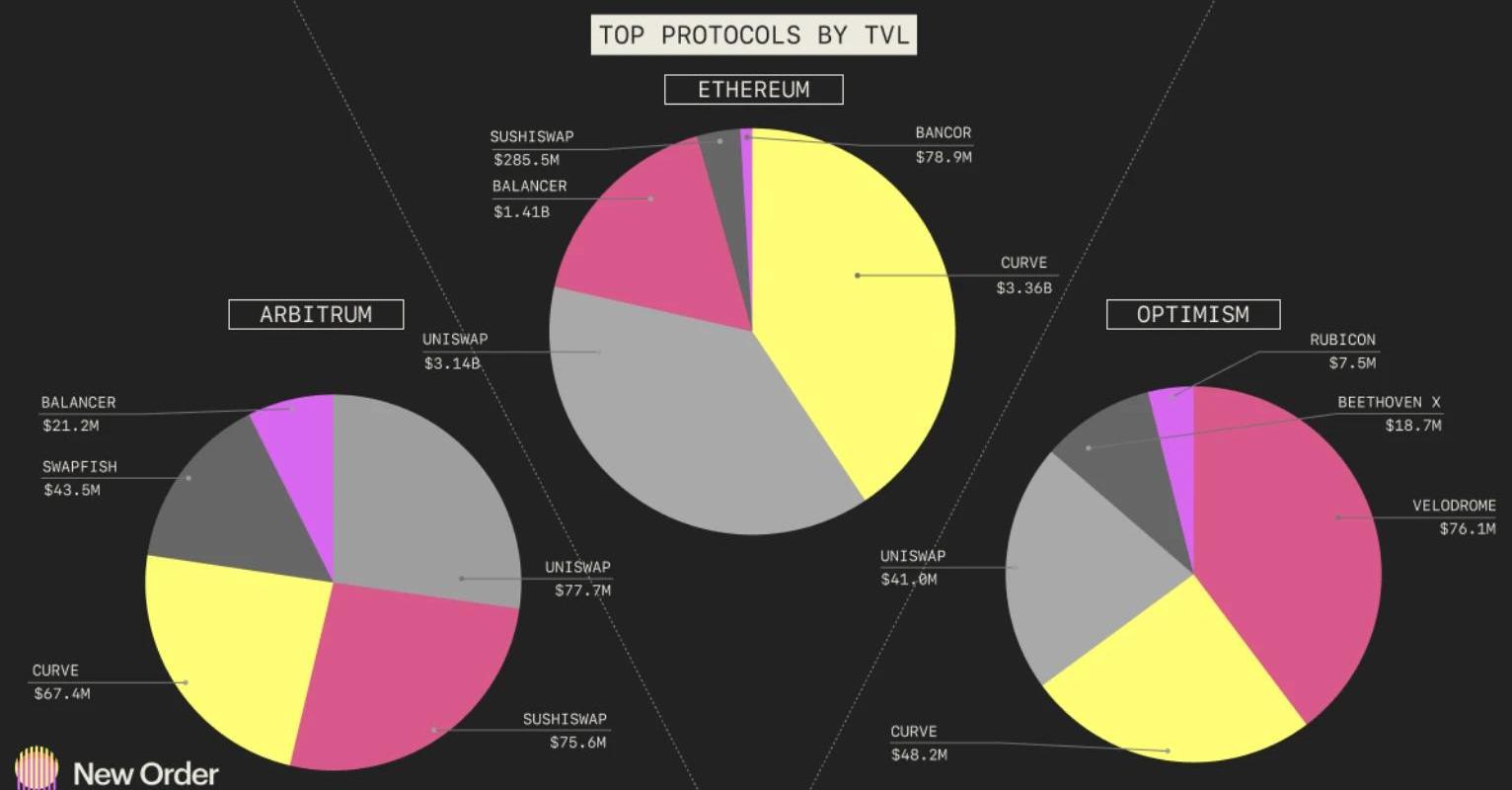 集中流動性供應和stableswaps的引入正在推動市場走向專業化,盡管很大一部分新興代幣市場無法找到分散在各種xyk聯合曲線之間的一致邊緣。這種代幣市場依賴于交易聚合器來有效地將其交易訂單路由到最佳執行環境,同時在交易場所的分散流動性中導航。為了分析整合的途徑,我們應該將碎片化這個大問題分解成多個層。這些層包括以下內容:應用程序、中間件以及基礎設施。應用程序是去中心化交易所,伴隨著作為交易層次結構最底層的聯合曲線。這類協議的例子包括Curve、Uniswap、SushiSwap等。中間件層充當鏈特定的DEX聚合器和流動性優化器。最突出的例子是作為聚合器的1inch,以及作為優化器的集中/單邊流動性供應。該層引入了鏈的特定效率優化,但沒有解決鏈內和跨鏈的資金碎片化問題。另一方面,交易基礎設施包括流動性方向引擎和通信協議,允許有效的跨鏈資產和消息傳輸。最頂層的例子包括Layer0,Polymer,Socket等,基礎設施層通過提供跨鏈流動性方向的工具包直接解決碎片化問題。這允許流動性提供者根據圍繞資本利用、滑點以及產生的費用的預測模型來分配資本。這種基礎設施允許將流動性分配給交易量最大的環境,從而最大限度地提高流動性提供者的資本利用率,并最大限度地減少對交易者的價格影響。流動性的整合在很大程度上被認為受到聯合曲線創新的約束,其中流動性提供者正在尋求最高的資本利用率以及最低的無常損失敞口。我們認為主要的瓶頸是流動性基礎設施,這超過了應用程序和中間件層的限制。在先進基礎設施的推動下,修復碎片化流動性的解決方案將在2023年實現前所未有的增長。實現流動性統一的標準將是兩種主要方法:異步跨鏈通信:增強的跨鏈消息傳遞解決方案,為不同的執行環境提供原生可組合性,例如,與鏈無關的IBC;共享流動性層:流動性中心,根據預測的數量需求將流動性分配到不同鏈和應用程序上的各個市場(例如SLAMM跨鏈流動性模型);2023年要解決的最重要問題:排他訂單流(EOF)