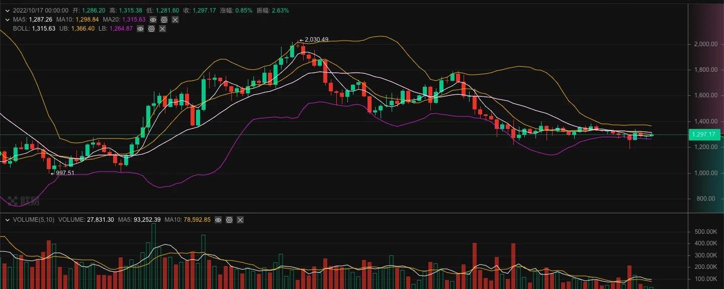 ultrasoundmoney數據顯示,以太坊供應量自合并后共增加7090枚,如果不進行合并,預計ETH供應量新增385180枚,新增量較POW時代下降超過98%。另外,數據顯示,過去一周,ETH供應量出現通縮,凈減5982枚ETH。Arbitrum開發商OffchainLabs周三宣布已完成對PrysmaticLabs的收購。PrysmaticLabs是負責以太坊網絡維護、升級和創新的核心軟件開發團隊之一,也是以太坊客戶端Prysm的開發團隊,Prysm是當前用戶規模最大的以太坊客戶端,目前有41.5%的驗證節點都在使用Prysm驗證交易。以太坊二層解決方案Optimism表示,其OP代幣推出時總供應量宣布將以每年2%的速度膨脹,但當部署合約時該比率被錯誤地設置為20%,晚些時候會將合約邏輯更新為預期的2%。不過,Optimism表示,由于OP的通貨膨脹要到明年才會開始,沒有新的代幣被鑄造或移動,而未來對該數值的任何更改都必須通過治理進行。二級市場方面,目前ETH價格短時可能繼續盤整,支撐位1200美元,阻力位1300美元。二、二級市場