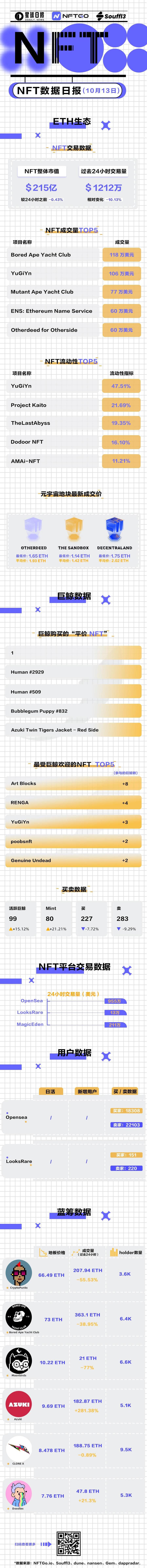 XRP/HKD+1.28%NFT數據日報是由Odaily星球日報與NFT數據整合平臺NFTGO合作的一檔欄目,旨在向NFT愛好者與投資者展示近24小時的NFT市場整體規模、交易活躍度,成交量、流動性指標、受巨鯨歡迎等維度下排前五的NFT項目,各主要元宇宙平臺上NFT的最新成交價格,NFT平臺交易和用戶情況、藍籌NFT項目表現等數據。