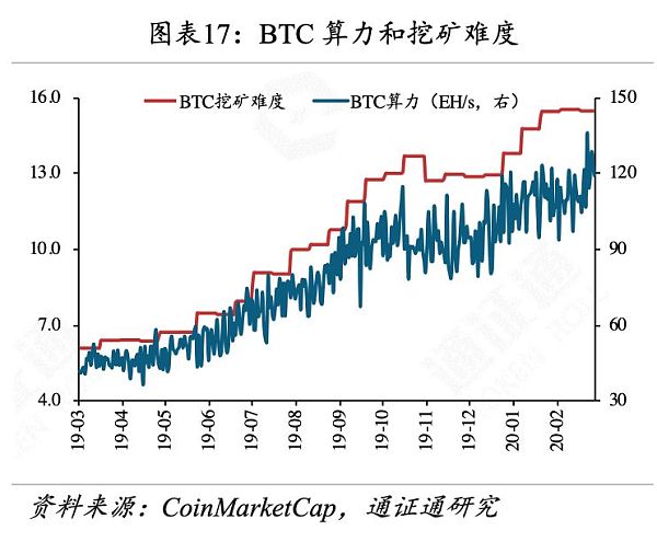 BTC日均算力突破新高。BTC本周挖礦難度為15.54T,未調整;日均算力為121.3EH/s,較上周增加9.4EH/s,算力大幅上升并突破新高。ETH本周挖礦難度2224.9,較上周下降61.7,日均算力180.5TH/S,較上周下降0.9TH/S。