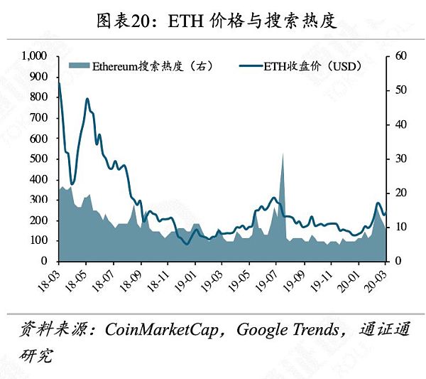 本周,Google Trends統計的Bitcoin詞條搜索熱度為10,Ethereum詞條搜索熱度為9,熱度繼續回落。