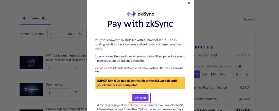 1.返回結賬頁面,點擊“zkSyncCheckout”。