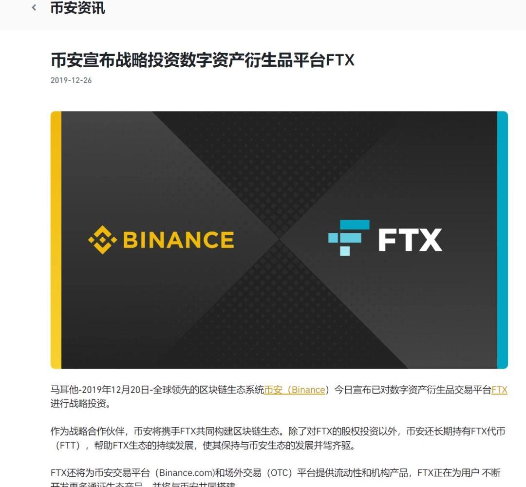 FTX啟動于2019年第二季度,成立時FTX團隊股權估值1億美金,平臺幣估值1億美金。在2019年12月20日,幣安宣布已對FTX進行戰略投資。也就是說FTX啟動不到半年估值就達到了10億美金。幣安表示,除了對FTX的股權投資以外,幣安還長期持有FTX代幣,幫助FTX生態的持續發展,使其保持與幣安生態的發展并駕齊驅。彼時衍生品市場被BitMex與OKEx等牢牢占據大頭。靠山寨幣現貨起家的幣安,才剛推出合約業務。幣安希望通過投資FTX的方式加大生態布局,幫助幣安在衍生品市場實現后來居上。雙方也是在這時度過了一段和諧的蜜月期。
