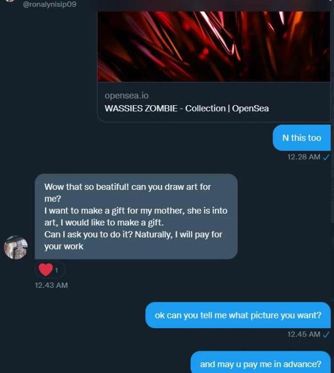 黑客正在通過修改文件擴展名,將惡意文件偽裝成PDF,并針對藝術家、影響者和項目方進行攻擊。原理如下:案例:加密藝術家TARSIUS收到一條委托消息,并收到一個壓縮文件包,里面據稱包含了「客戶要求、示例以及草圖等資料」。當該藝術家打開這個壓縮包后,原本普通的委托就變味兒了。