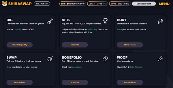 截至目前,Shiba Inu已經形成了Shibswap、Shibshis 游戲、Shiba公益等產品和使用方向,其中Shibswap形成了SHIB(基礎貨幣)、LEASH(激勵代幣)、BONE(治理通證)三Token運轉的經濟系統,并提供挖礦、NFT、燃燒、交易、股權激勵、質押等功能。