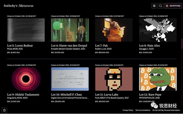 10月18日,蘇富比推出了名為“蘇富比的元宇宙”(Sotheby’s Metaverse)的精選 NFT 平臺,用戶可以在該平臺上使用 ETH、BTC、USDC 或法幣購買 NFT。