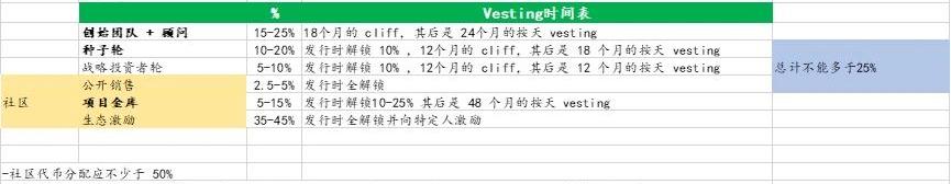 大多數項目在創建代幣之前主要研究股權結構表。在項目的初始階段,通常搞不清楚股權與代幣的價值產生有什么差異。在創建代幣時,我們建議讓利益相關者都能分配代幣,而不是分多輪募集。這使利益相關者激勵措施保持一致,并預防可能出現的沖突。因為沒有「未發行股票」可供公司自由裁定,代幣分配不同于傳統的股權結構表。代幣量和分配方式在項目公開發布時確定。相比之下,擁有傳統的公司可以不斷增發,雖然這會稀釋現有股東的所有權。Crypto行業標準是將至少50%的代幣分配給社區,這可有效地稀釋創始團隊和投資者能夠保留的所有權。例如:如果團隊擁有100%的控制權,并以把代幣的50%分配給社區,最后團隊只有50%的控制權。以下是我們的代幣分發指南: