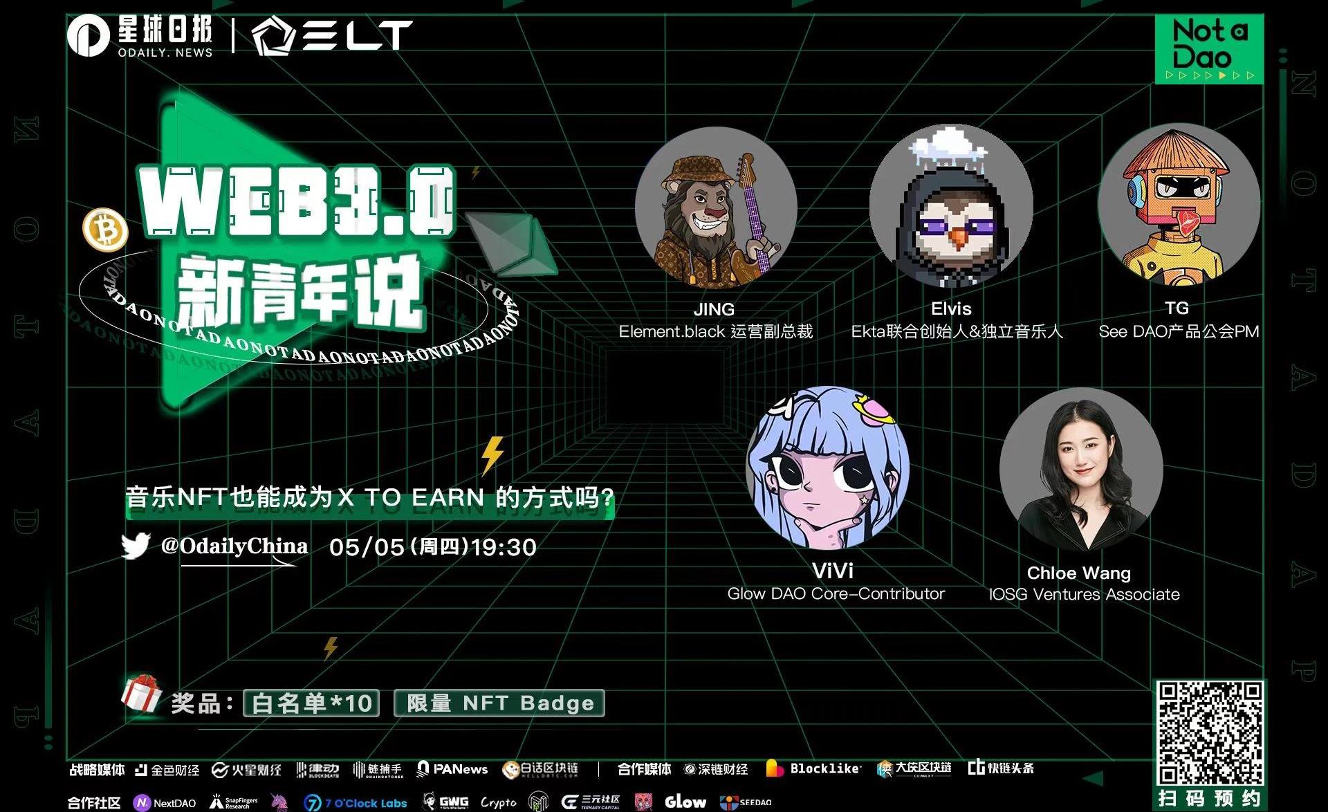 以下是文字回顧,經Odaily星球日報編輯刪減:Q1、這一年我們看到很多音樂行業頂級大佬內的人都在躬身入局這個賽道,也看到很多主流機構類似a16z也在這個賽道押了重注。那么各位嘉賓怎么看待這個賽道呢?JING|Element.black運營副總裁:第一個原因是從需求端來說,很多音樂人他們對NFT賽道特別感興趣,但是確實在過去的幾年里,音樂NFT賽道并沒有發展的特別完善。音樂人并不知道以什么樣的方向開始比較好,以及NFT要結合什么樣的音樂內容給到粉絲,所以從需求端上來講這是未來的趨勢。第二個原因我覺得音樂領域跟其他娛樂產業還是有很大的區別的,包括電影、電視、動漫等。音樂內容領域的粉絲更加狂熱,數量也更加龐大。他們對于喜歡的音樂人是有百分百的熱情去支持的,不管是購買專輯還是去流媒體平臺聽歌,或者說去線下的演唱會音樂節等等。同時音樂愛好者還非常喜歡去收集他們喜歡的音樂家相關的衍生產品,所以這類產業本身就是一個粉絲基礎很強大的行業,所以我們覺得未來音樂NFT會有強大的資金收益以及其他的粉絲消費出現。第三點是版權和收入不透明的問題。傳統上來講,音樂行業里面產生的收入其實很大一部分都被發行方或者說制片公司等等這些中間商拿走了,真正的音樂人很少能夠從他的音樂內容中產生收益。音樂NFT其實是一個很好的解決方案,能夠幫助音樂產業帶來更多的透明化,讓音樂創作者得到一個很好的收入保障,以支撐他們繼續在喜歡的音樂行業持續發展。所以我們重點押注這個賽道。Elvis|獨立音樂人&Ekta聯合創始人:我覺得在Web2到Web3的過程中,實際上是有兩個主要維度,第一個維度就是說你能平移哪些內容,就是Web2已經有了,那么你只要把它升級到Web3,這個就是更加進步的,更加高級的滿足了用戶需求,這是第一個維度。第二個維度就是從Web2到Web3的升級,也就是說有一些行業的痛點在Web2里面解決不了,但是通過Web3的技術革命就可以解決了,那么這個又是另外一個維度。那么從以上兩點來看,我認為音樂的社群其實是非常強聯系的,這個和其他娛樂產業確實不太一樣。大家剛才提到了狂熱,那么我這里的觀點是:社群粉絲更長久。有的時候粉絲是比較沉默的,但是你如果去看豆瓣還有網易云音樂,你看那里的社區粉絲,他真的會喜歡一首歌很長時間,喜歡這些歌手的人也是很長久的聚集在一起,所以我覺得這是一個關于社群的共識。第二個我認為在這個共識之下,Web2直接移到Web3來,這本身就可以有足夠大的市場,足夠多的人群,足夠狂熱的熱情,以及足夠長的強聯系。那么第二個維度就是說哪些問題Web2里面解決不了,但Web3里能解決的,大家提到的中間商的問題我不贅述了。那么還有一點我認為很重要就是說NFT作為一種通證形式它本身就是社交圈層,就是身份的認證,所以這里面就帶來了很多應用。其實在傳統音樂產業,不管是APP還是網站,很難實現爆發。但是你用NFT,尤其是最近大家看到的NFTPASS卡等,它可以提供財務權益、門票、交易使用等方式,大大的解決了Web2收入的問題,擴大了收入規模。Vivi|GlowDAOCore-contributor:我覺得音樂跟其他形式的內容不太一樣,它有幾個特點,第一是它受眾面是非常廣的,它播放和使用場景也非常廣,它對設備的要求也相對較低,而整個內容形式存在的時間也相對較長,導致它更容易有比較高的粉絲粘性,連接社群。其次,當前音樂行業,特別是廠牌公司的市場份額都被前三名占據了,而且音樂的制作是非常復雜的,不是一個人就能完成的,這就是為什么廠牌能活下來,他們需要彼此協作。除了好的歌曲之外,背后的制作團隊也非常重要,其實這對于音樂創作形式本身以及新進來的音樂人來講都是非常不健康的,所以你會發現好像一直沒有新的好歌出現,但是Web3改變了這個局面。Web3就像一個DAO一樣,它促進不同音樂人之間的價值交換,然后讓他們能夠找到跟自己想法類似的人,一起創作音樂,同時也能獲得資金的支持。大家可以通過購買音樂NFT在經濟上支持這些創作人,讓早期音樂人做自己的音樂,把小眾音樂人逐漸變得不那么小眾。這也間接的改變了創作形式。所以這是我覺得為什么音樂NFT是一個值得關注或者押注的賽道。ChloeWang|IOSGVenturesAssociate:站在投資人的角度,我們認為音樂NFT賽道是擁有長期價值的,并不是一個單純的投機。其次,因為音樂它本身是一個比較特殊的產品,它的本質在于為聽眾提供了共情的方式,因此它的重復消費率非常高,并且黏性也很強。再者音樂是一個非常大的市場,它的市值大概是200多億美元,因此我們認為這個市場是非常有前景的,并且認為音樂NFT的作用主要是在兩個方面:第一個就是降低中間商,比如說音樂平臺或者是唱片公司在價值分配體系當中的作用。第二個就是減少經濟模型的顆粒度,比如說如果你是一個小眾的音樂人,你的音樂受眾并不廣,你在Spotify上面只有10個人來聽你的音樂,按照流媒體模式你可能只有零點零零幾美元的收入,但是如果有10個人愿意買你這個NFT,1個NFT100美元,那么這就是1000美元的收入。因此我們認為音樂NFT一定程度上縮小了顆粒度。TG|SeeDAO產品公會PM:首先,音樂NFT市場足夠大,它的頭部沒有形成壟斷,在這個市場里其實有很強的包容性,比如圍繞音樂可以展開各式各樣的創業形式,產生很多可能性,所以說音樂NFT還是一片藍海。第二,這個市場也有非常多