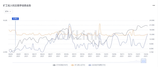 以太坊礦工日平均收入變化,數據來源OKLink鏈上大師