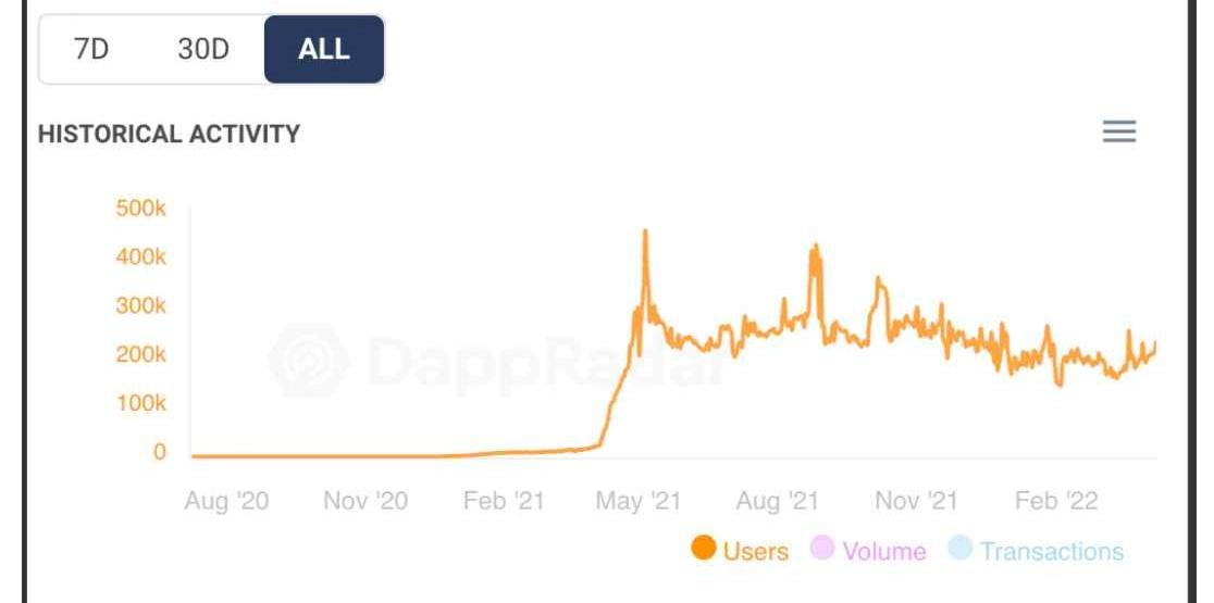 AxieInfinity的用戶數、交易量趨勢圖