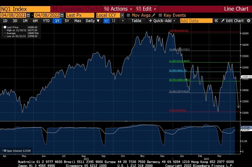 正如這張圖所示,在+1%的時候,利差在倒掛之前還有一定空間。當這一曲線倒轉時,由于烏俄沖突造成的商品價格上漲導致全球需求疲軟,NDX會跌到什么程度?下跌30%?50%?同時我們要清楚,美聯儲并不打算在短期內再次擴大其資產負債表,這意味著股價不會再走高。戰爭何時結束