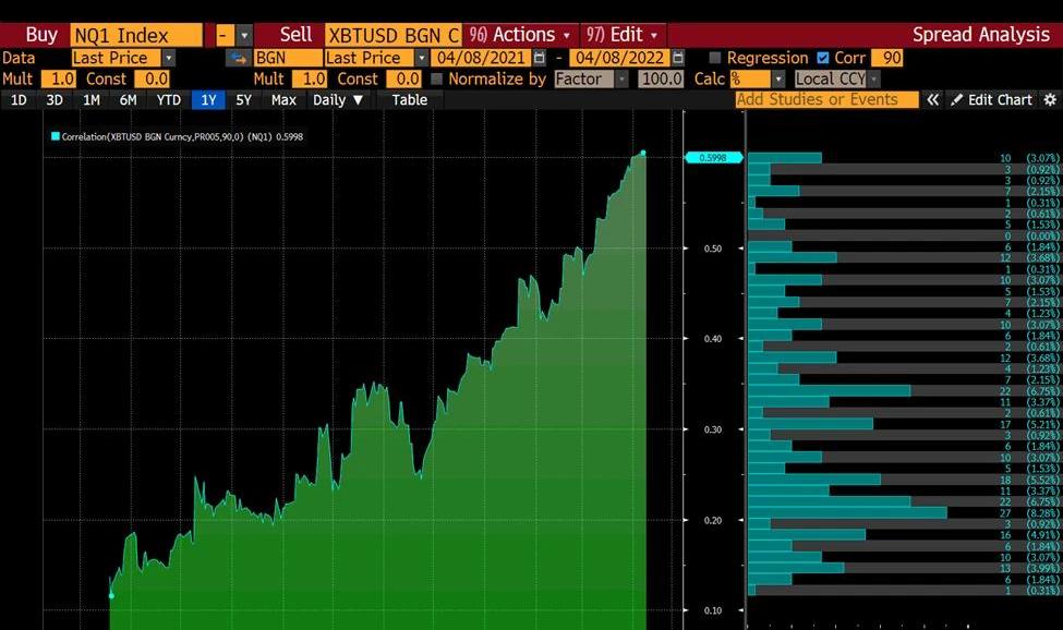 XRP/HKD+1.7%本文經過了較多的編輯,標題中的Q可能是指“QE&QT量化寬松&量化收縮中的Q”。一個或許我們不太愿意承認事實是,旨在通過技術革命顛覆華爾街的加密貨幣行業,當前的行情走勢卻與美股這類風險資本市場走勢具備高度相關性,我們知道這類風險資本市場的命脈是央行的印鈔機,早在年前我也多次提醒讀者美聯儲準備停止放水甚至抽水的舉措,而這一行為,對于傳統資本市場來說,打擊是重大的。在《EnergyCancelled》這篇文章中,我認為,從西方決定沒收俄羅斯央行法定儲備資產的那一天起,石油/歐元的全球金融架構就停止了。這一行動開啟了一個時代,在這個時代,除了美國或歐盟國家(也就是南半球)以外,任何國家都完全有理由“儲蓄”黃金,最終是比特幣。在三到五年的時間里,這種可能性將導致比特幣達到100萬美元,黃金達到1萬美元。盡管這種樂觀的預測令人興奮,但我們生活在當下,而不是未來。我們中的許多人現在必須就是否買入做出決定。我建議保持耐心。下面,我將通過一系列圖表,來解釋一下,我們可能面臨的災難性的行情。高度相關性,何時解耦?