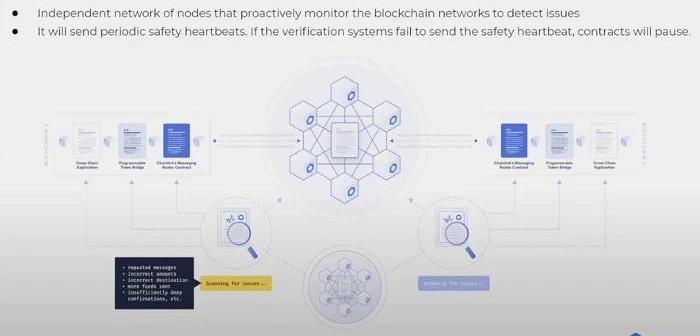 除了有著與LayerZero類似的功能之外,CCIP還具有反欺詐功能。那些處理跨鏈交易的節點都是單獨的,一旦檢測到執行的交易消息與交易中的A鏈狀態有不一致時,智能合約功能將會被暫停。