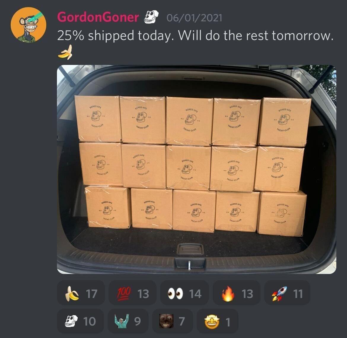 2021年4月23日BoredApeYachtClub推出為期一周的預售。鑄造一枚BoredApeNFT的成本為0.08ETH,當時約為220美元。預售期間共有大約500只猿猴被鑄造。2021年5月1日煎熬的一周過后,剩下的無聊猿在一個瘋狂的夜晚全部被鑄造。該系列于2021年5月1日凌晨售罄。當晚,BAYC是以太坊網絡上使用最多的智能合約,把UniSwap遠遠甩在了后面。我們的Discord從一個完全死氣沉沉的地方變成了加密領域最熱的地盤。2021年5月9日BAYCLoFiRadio首先是錄好的視頻,在5月21日變成了直播。實話實說,我們專注于路線圖中的其他事項,所以YT頻道設備已經多次故障了,這就是為什么很少有觀點或評論哈哈。