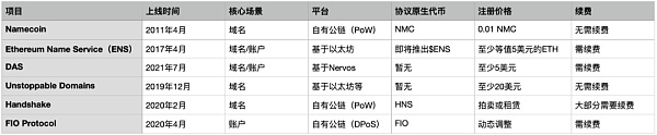 除此之外,各個協議還有是否選擇自建公鏈,具體的注冊價格等多種維度的區別。