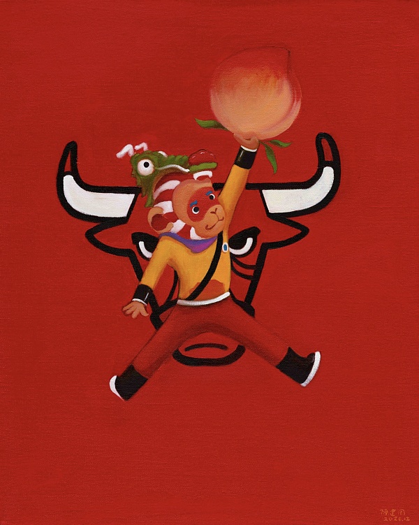作品介紹:“喝!且看我縱身一躍的酷炫身姿!”孫悟空一年三百六十五天,都忙著跟大家伙兒一起趕往西天取經的路上,斬妖除魔,簡直就是魔幻版的996化身。好不容易有幾天是屬于自己的空閑時間,馬上將自己最愛的“籃球”操起來!哎呀呀,沒有籃球,我就去偷顆蟠桃來替代下吧~,反正都一個樣。孫悟空一碰觸到蟠桃,他就猶如是”紅牛“一般,燃起了熊熊斗志!整個人都來勁兒了。這不,好幾個“大滿貫”都被他拿下了。“不愧是俺老孫我!”他一臉春風得意,臉上洋溢著滿足的笑容。