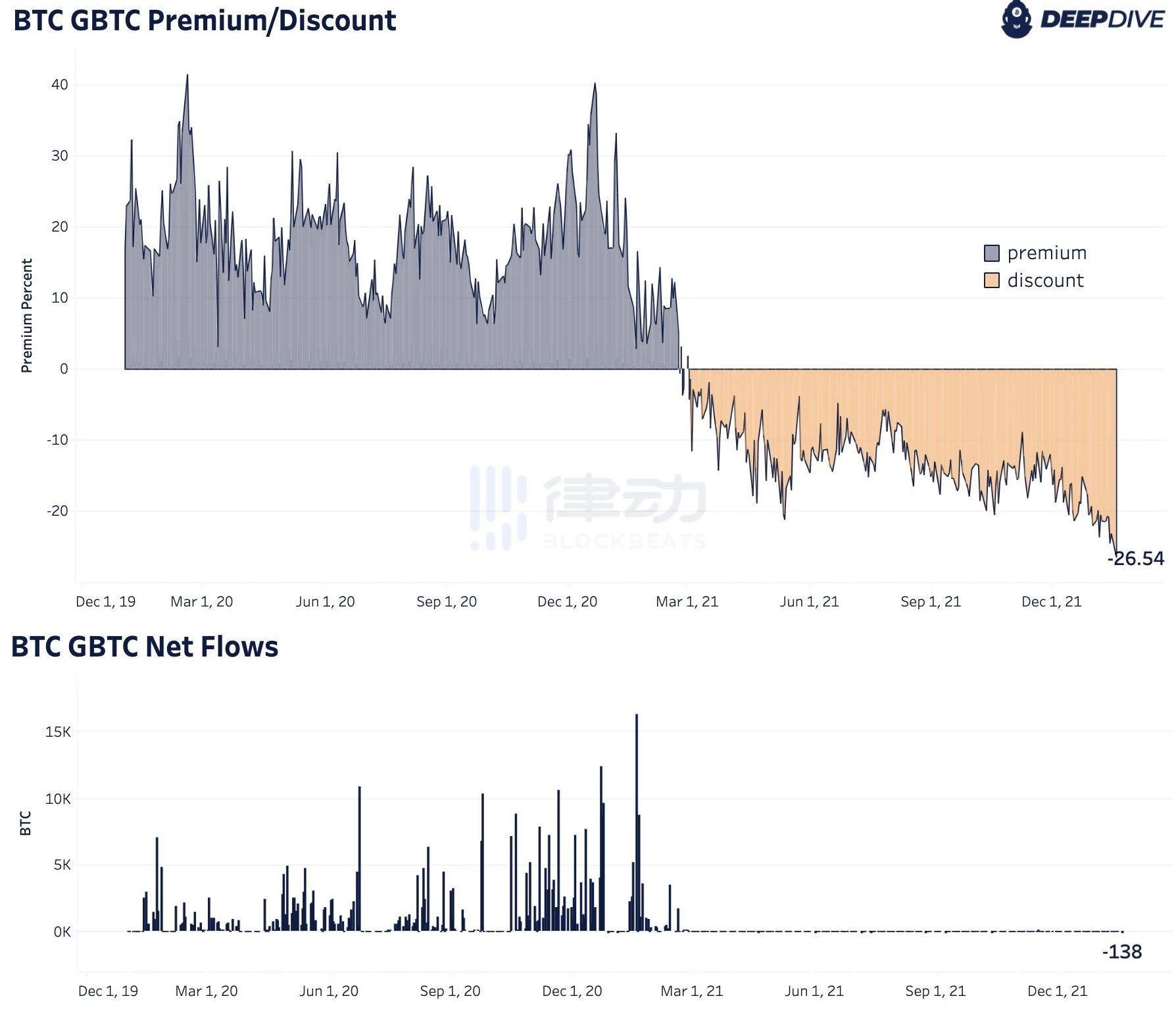 這些投資者則尋求從灰度以資產凈值購買GBTC,并用溢價標記他們的賬簿來進行「無風險」的套利交易,但當GBTC在去年2月開始以低于資產凈值的價格交易時,他們意識到這種套利模式已經被打破。