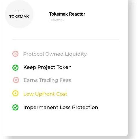 尋求長期可持續流動性的項目,最好能收購TOKE份額并為Tokemak反應堆埋下種子。他們可以使用TOKE在他們選擇的任何受支持的流動性市場中配對他們的項目代幣,而不會有無常損失的風險。通過Fei和Ondo,流動性即服務(LaaS)