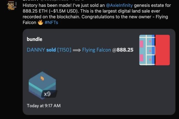 首先要明確的是,NFT具有無限的潛力。今年2月,AxieInfinity以888.25ETH的價格出售了9塊地。