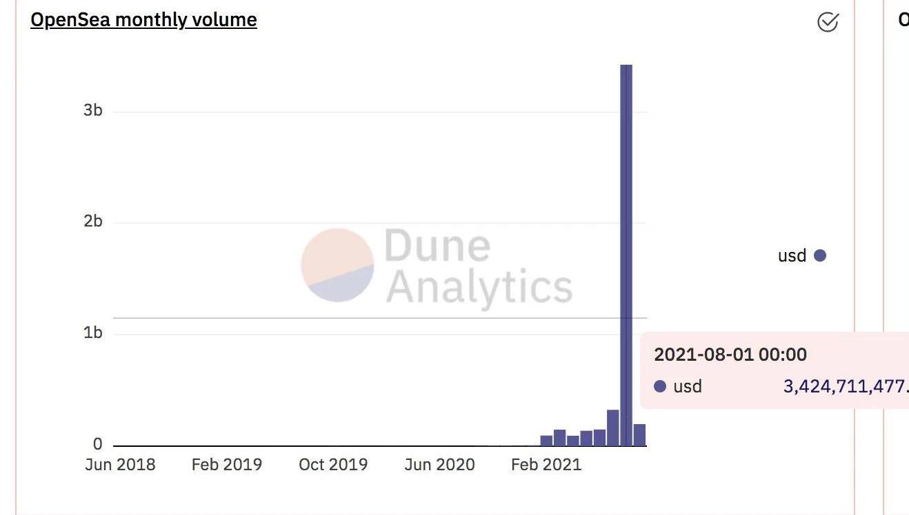 OpenSea處于增長的最前沿,近98%的NFT銷售都是通過該平臺完成的。OpenSea似乎要承擔整個以太坊區塊鏈費用的很大一部分。
