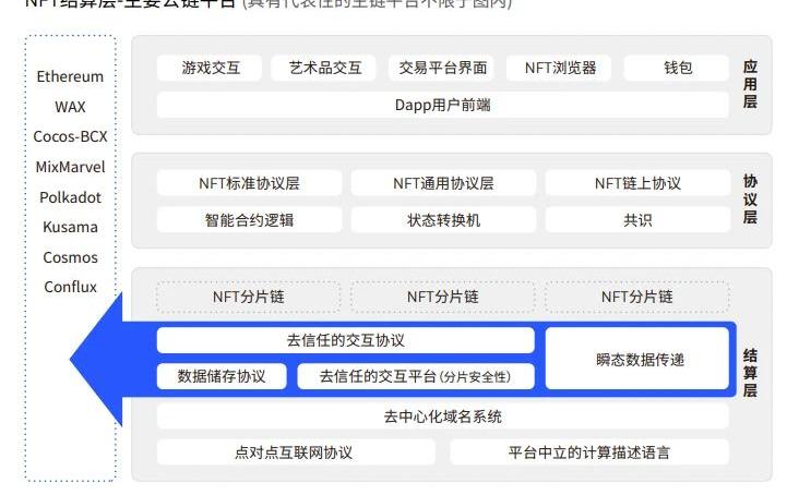 1)結算層:主要負責價值的記錄與結算NFT結算層負責處理與FT類似業務,包括為整個生態提供一個固定的錨,以實現整個生態安全性和一致性,目前NFT應用搭建最多的結算層以公鏈為主。