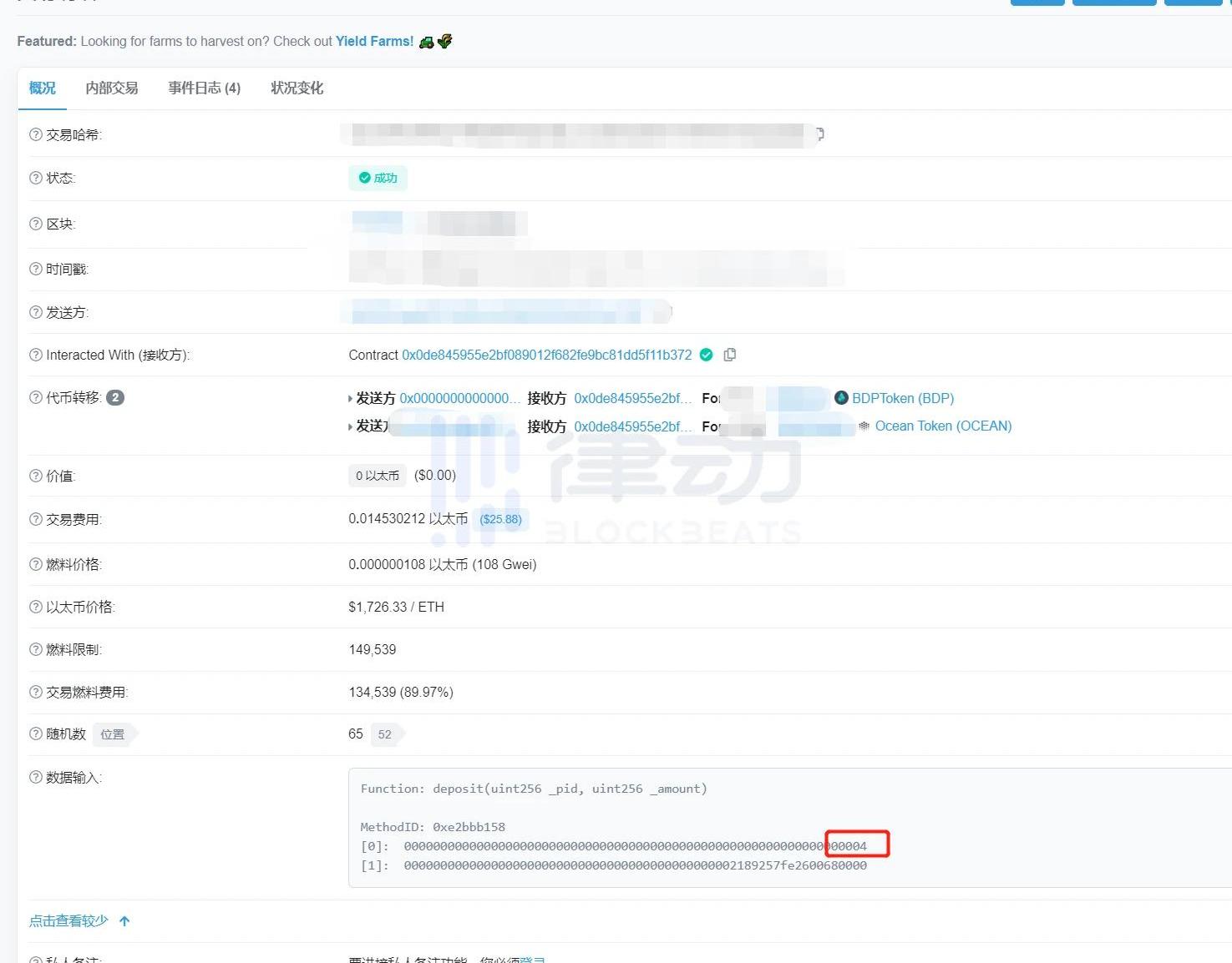 XRP/HKD+1.73%編者按:本文來自區塊律動BlockBeats,Odaily星球日報經授權轉載。3月12日,DeFi協議BigDataProtocol代幣BDP挖礦已結束。但據社區顯示,挖礦資產無法通過官方界面提出。官方在社群中表示,目前有兩個提現方式,第一種,等待官方開發者解決UI操作問題;第二種,在Etherscan使用emergencywithdrawal合約交互提現。但社區用戶表示,使用第二種方式只能提出挖礦資產,無法提取獎勵。對此,官方團隊表示,后續將聯系未提出獎勵的用戶。不過目前許多用戶對于保留于BigDataProtocol項目中的資金有所擔憂,因此律動BlockBeats將借BDP的例子,以圖文的方式教大家如何使用emergencywithdrawal合約交互提現。1、找到向BigDataProtocol合約轉賬的unit256pid。