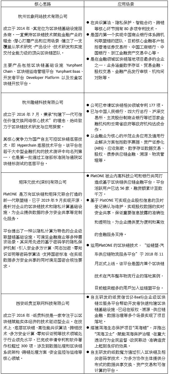 此外,一批創業團隊也開始涌現,為中國聯盟鏈帶來活力。通過研發區塊鏈底層協議技術、推出各種具有針對性的聯盟平臺、聚焦特定落地場景,這些團隊以輸出區塊鏈解決方案的模式提供服務,不斷拓寬聯盟鏈生態的廣度和深度。聯盟鏈的服務場景被進一步拓寬,涵蓋數字版權保護、供應鏈溯源、跨境支付、物聯網、醫療信息共享等場景。